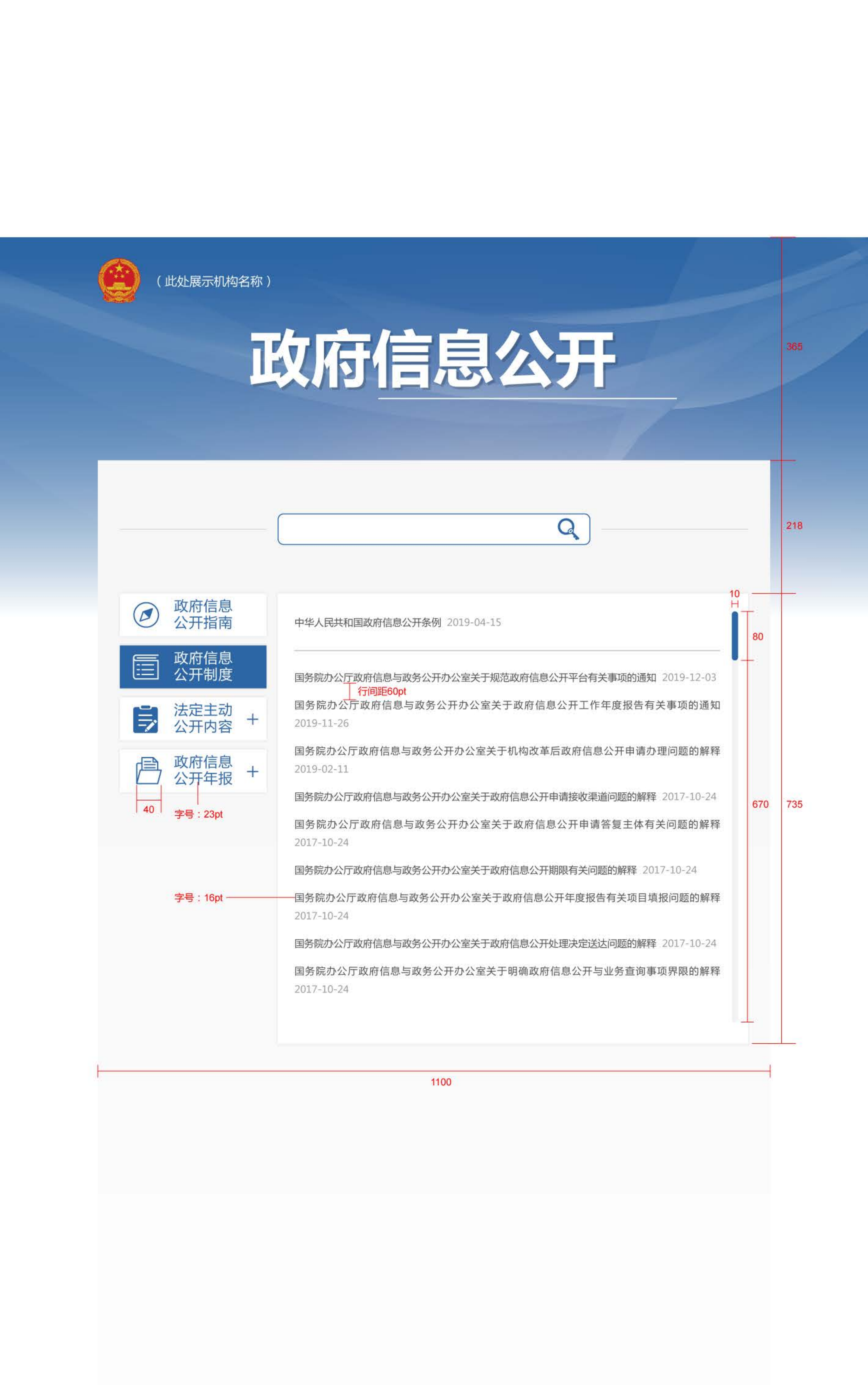 中国政府网运行中心根据上述要求设计了“政府信息公开栏目页面设计参考方案”,供参考使用。