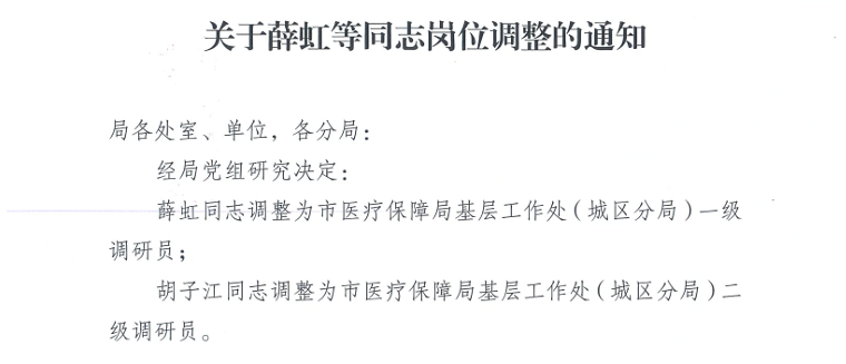 关于薛虹等同志岗位调整的通知