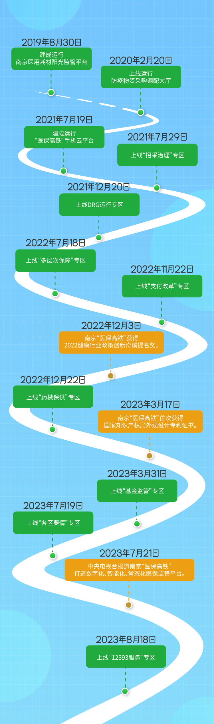 2021年7月19日,按照国家医保信息平台统一标准,南京市医保局在全国创新打造上线南京“医保高铁”,探索引领“三医”协同发展和治理新实践。2023年9月27日,南京“医保高铁”已运行800天,持续汇聚医保、医院、医药大数据,通过数据挖掘、集成、分析和呈现,聚焦医保主体业务,建立医保数字评价指标体系,创新医保信息化、精细化管理模式,数字技术赋能医保改革、管理、服务能力显著提升。