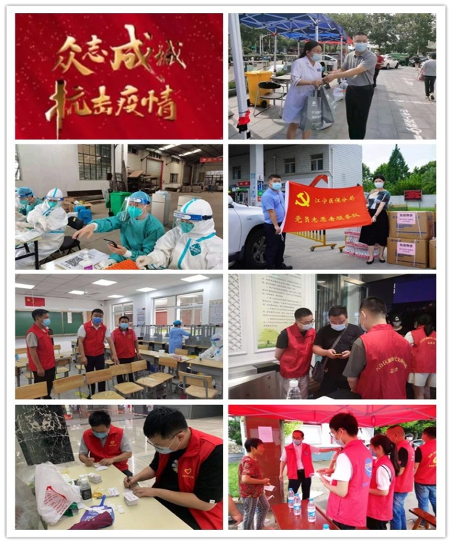 江宁分局党支部4名有医学专业背景、抗击疫情指挥调度经历、医保业务水平高的同志,主动报名请愿,积极参加区防疫指挥部,承担涉外联防联控、医疗救治、物资保障与储备、综合信息等工作,24小时在岗在位毫无怨言。