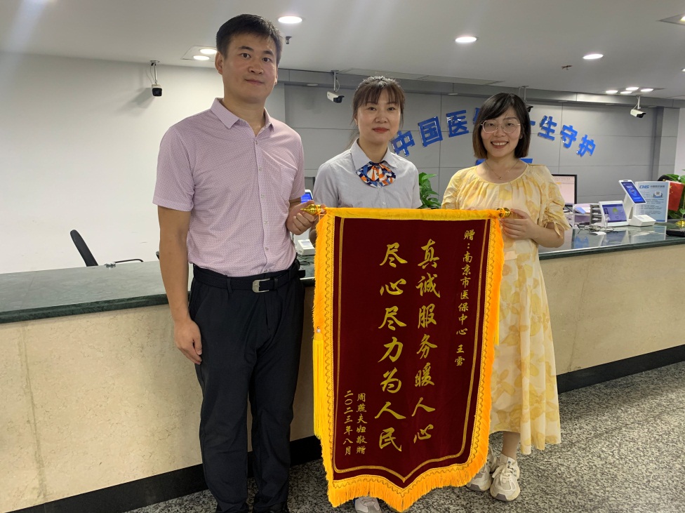 这面锦旗不仅是对王雪个人的赞扬,更是对医保中心全体窗口工作人员竭诚服务、努力工作的肯定。今年上半年,市医保经办大厅获“南京市最佳政务服务大厅”荣誉,窗口服务科(异地就医科)副科长李轶阳获“最美政务人”称号,并在二季度全市窗口服务满意度评比中位列第3。在下步工作中,中心全体干部职工将牢记刁局长“经办就是服务”的要求,认真学习身边典型榜样,不断提升服务水平,力争在窗口服务满意度评价中争先进位,为参保群众提供优质、暖心的经办服务。