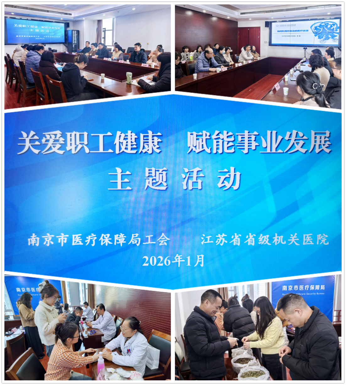为进一步关爱干部职工身心健康,营造更加健康和谐的工作氛围,市医疗保障局工会联合江苏省省级机关医院,于2026年1月22日下午,组织开展了“关爱职工健康赋能事业发展”主题活动,开展健康知识讲座和健康咨询义诊,为干部职工提供专业的知识科普和精准的健康服务,帮助大家了解常见疾病的预防和治疗,提升干部职工的健康素养。主题活动包括两项内容,第一项内容为健康知识科普讲座,分别由省级机关医院桂波副院长、康复科邱永斌主任主讲。第二项内容为健康咨询义诊和互动体验,义诊的科室分别是肿瘤科、康复医学科、中医科,互动体验主要是中草药香囊DIY、中医茶饮。通过活动,大家增长了医疗健康知识,咨询了个人健康需求,提高了自我保健意识。