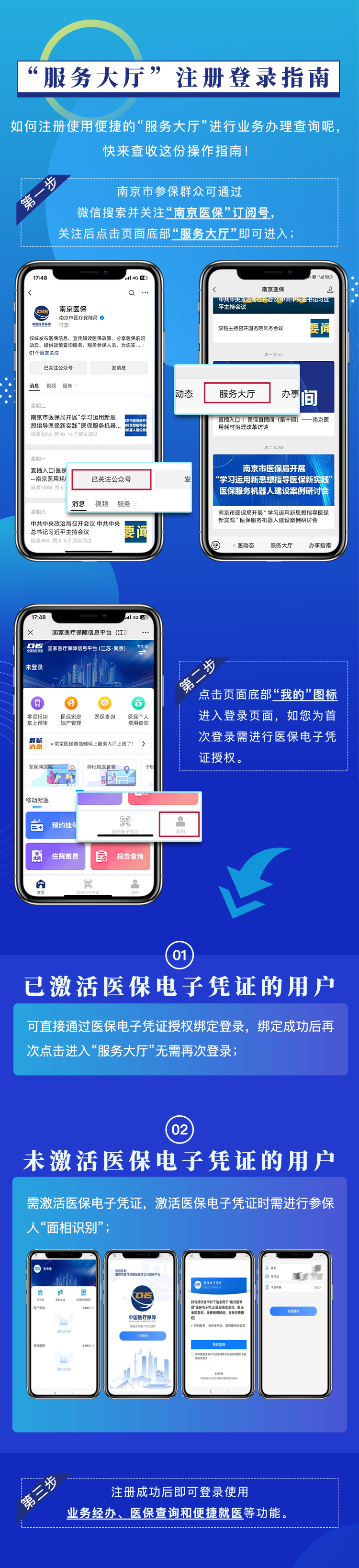 为方便线上办理医保业务、查询医保事项,南京市医保局依托“南京医保”微信公众号,上线“南京医保-服务大厅”。近期,南京市医保局将推出医保移动服务大厅系列使用指南。